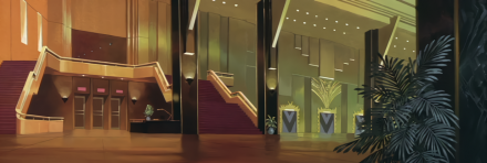 The Lobby of the Eyrie Building is fairly standard. Many elevators lead here and there are also several massive staircases leading up into the building. At least one guard is on duty here.
